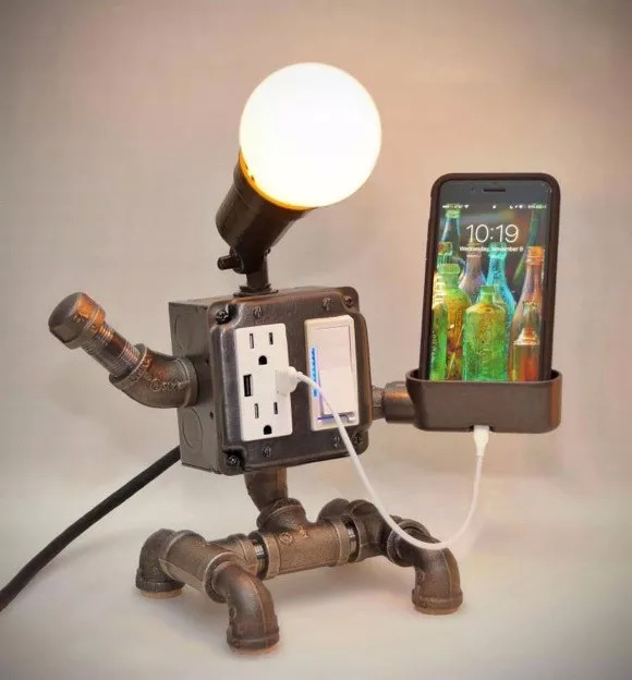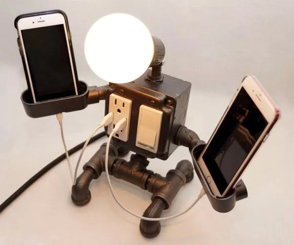 很多男同学都喜欢蒸汽朋克风格的设计,显得特别工业范。这款用来充电的奇怪机器人可能能成为“大男孩”的新宠。