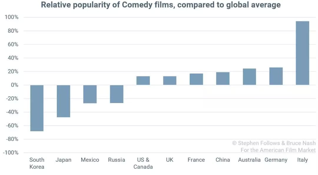 日本和法国观众对于爱情喜剧的兴趣就比较小(也许他们觉得爱情本身就并不可乐?)。