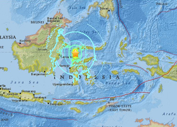 9月28日18时02分,在印度尼西亚(南纬0.25度,东经119.90度)发生7.4级地震,震源深度10公里,属浅源型强震。