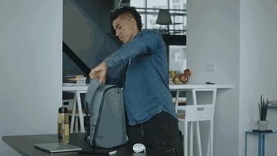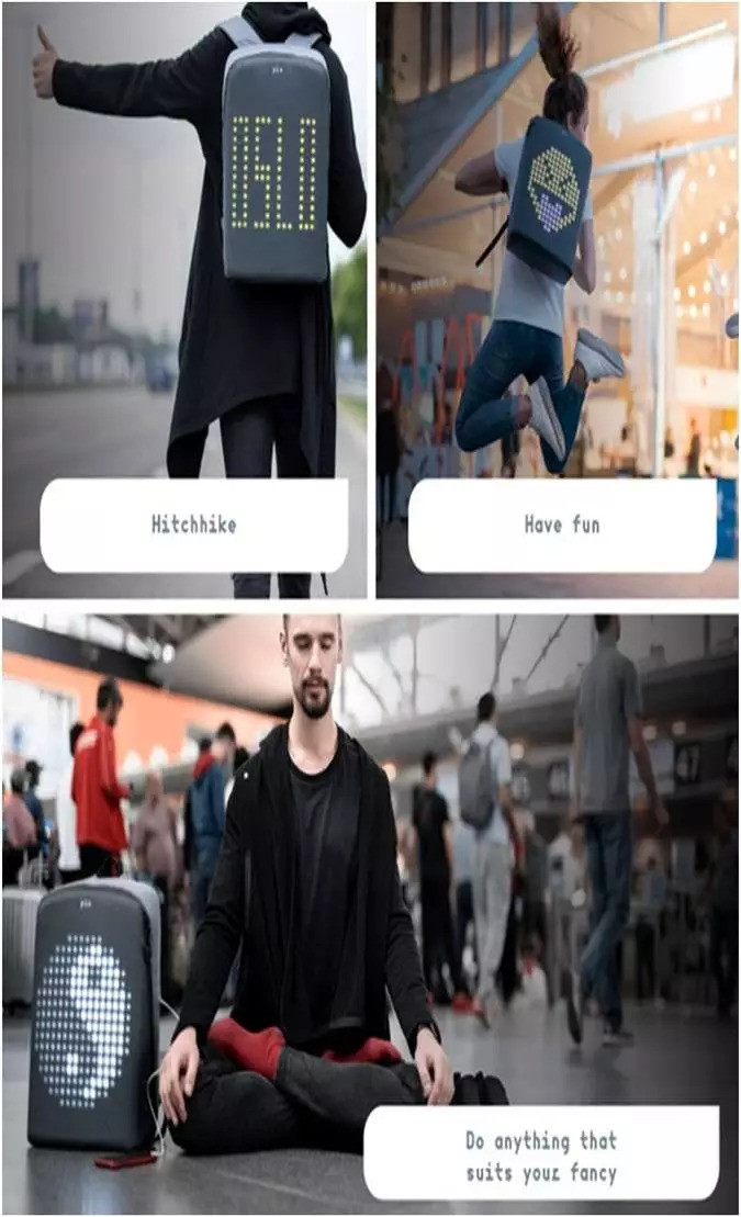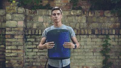 整个背包包括 LED 屏都采用了抗弯折的柔性材质。