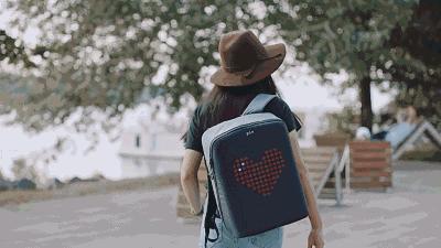 根据自己的心情在背包上实时变换,开心时希望旁人也能感受到这份美好,难过时发出信号,给彼此一些距离。