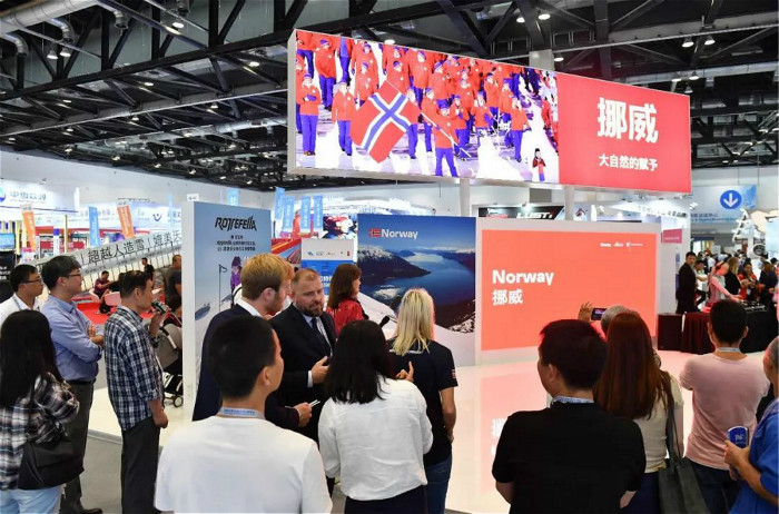 作为连续第二年参加国际冬博会,今年挪威展台展出了大量冬季运动相关的产业,包括滑雪设备、训练项目、滑雪胜地和冬季运动基础设施等。此外,旅游胜地,冬季运动训练学校,冬令营运营商也都在为人们讲述着如何更好的体验挪威的冰雪产业。