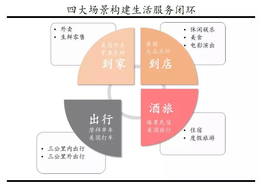 加上已经全资收购的摩拜,美团的衣食住行生态闭环完成。