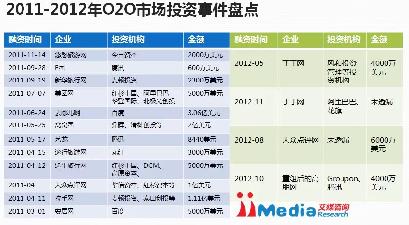作为O2O的原型,团购开始进入寡头竞争。而2012年,被认为是O2O元年。