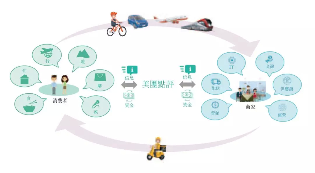 我们的科技平台连接消费者和商家,覆盖信息流和资金流。针对消费者,我们提供覆盖人们日常生活需求的多种服务。针对商家,我们提供多种解决方案使其运营数字化。在到店、酒店和旅游服务中,我们将在线消费者引流至线下商家;在实时配送服务中,我们将商家提供的服务送达消费者。同时,我们庞大的实时配送网络和多种交通服务使这种连接成为可能。