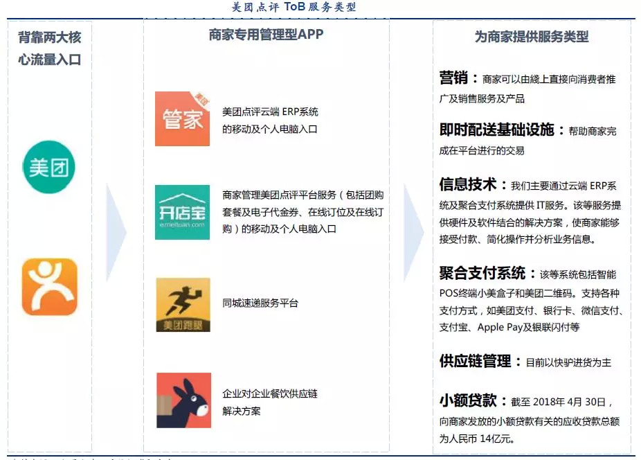 第三、To B业务(到店业务)王兴说过:“我的判断是下一波中国互联网如果想回暖的话,一个非常重要的方向是供应链和to B行业的创新,是他们驱动的。”