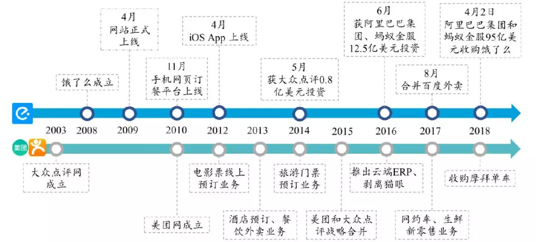 2016年4月,饿了么与阿里巴巴及蚂蚁金服正式达成战略合作协议,获得12.5亿美元投资,随后,饿了么接手口碑外卖商户运营及订单配送服务。