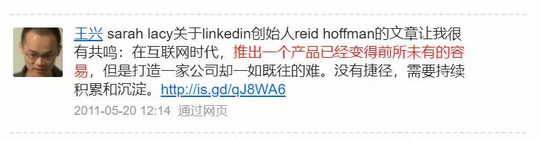 直到今天,王兴在自己饭否网上的签名,标签依旧是四个: