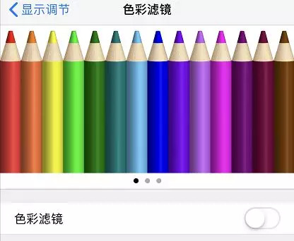 差友们需要在【 设置 】→【 通用 】→【 辅助功能 】→【 显示调节 】里打开灰色的【 彩色滤镜 】。