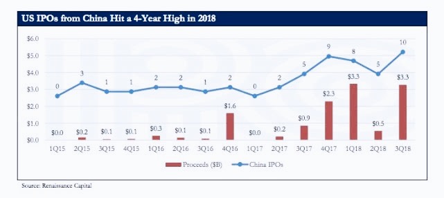 根据市场研究公司Renaissance Capital的IPO报告显示,在第三季度,10家中国公司在美国上市,而美国只有4家公司上市。