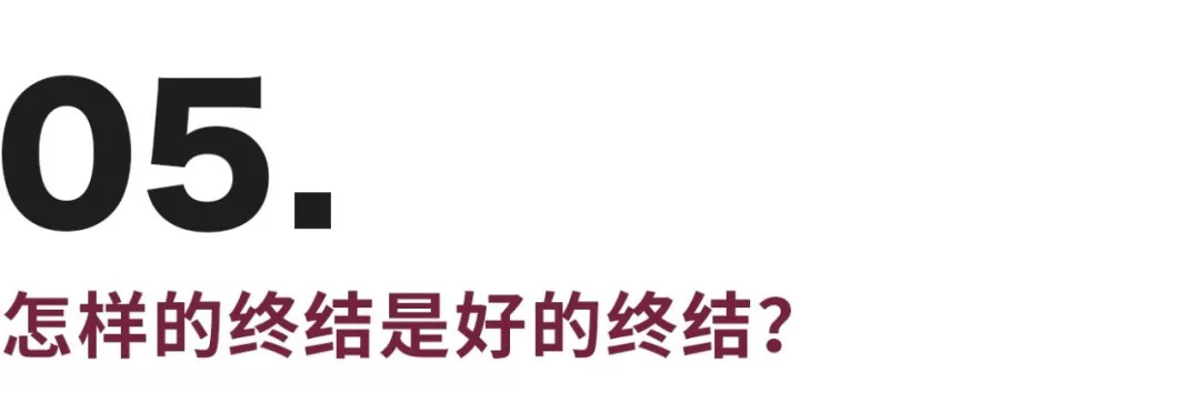 好的终结,对关系而言,也是一种好的结果——不是只有永不分离才是好结局。好的终结能让我们从中获得显著的成长,能够加深我们对自身的了解,也能影响我们后续的三观。好的终结不会留下太多让自己困惑的情绪、不会遗留和压抑太多尚未解决的情绪。尽管人们仍然会为好的终结悲伤一段时间,它却不会对我们造成太过深远的负面影响。