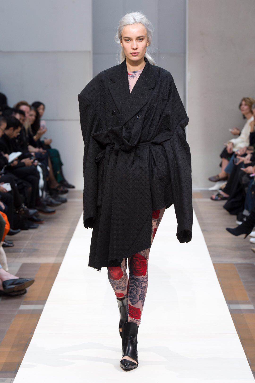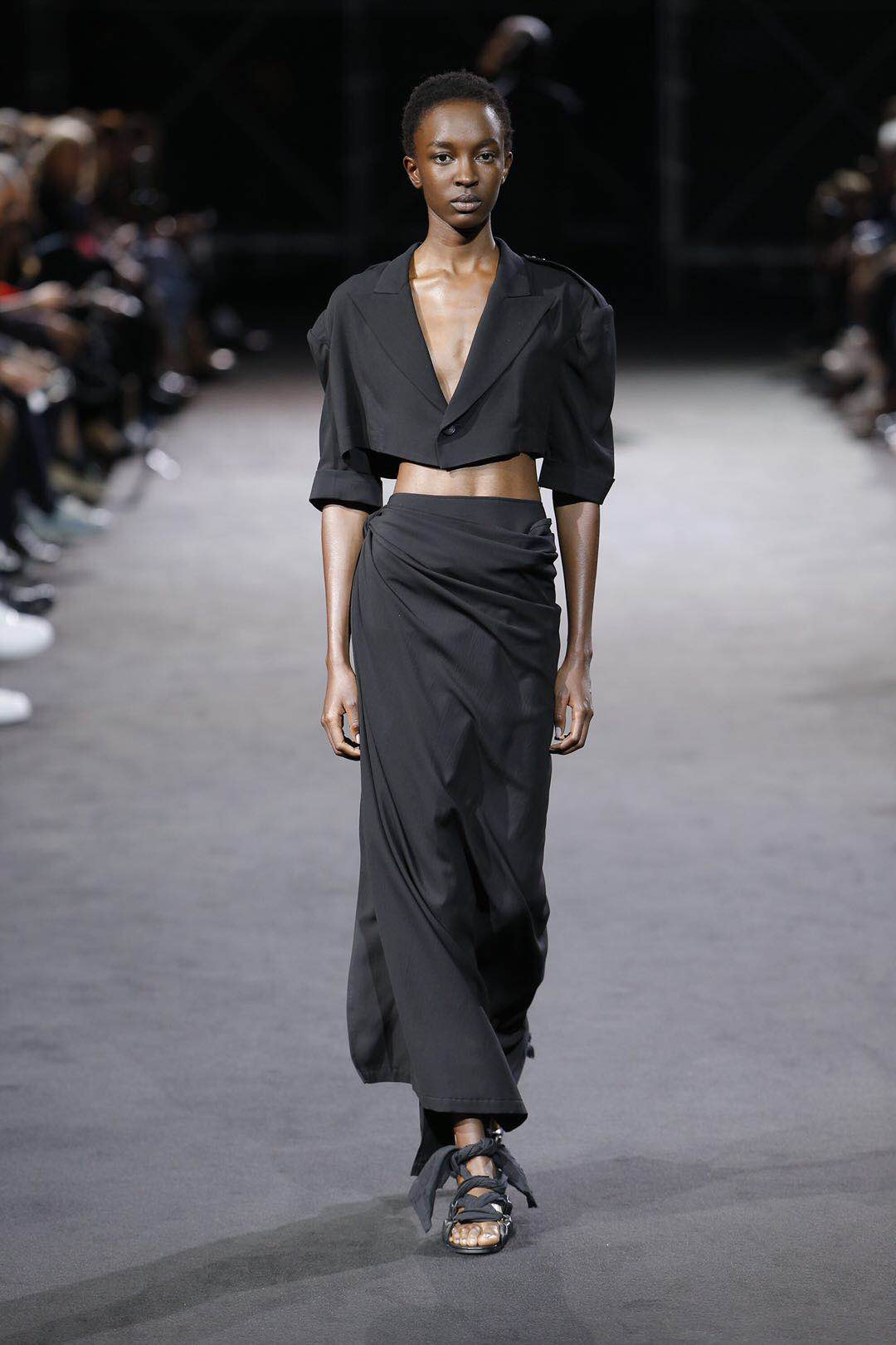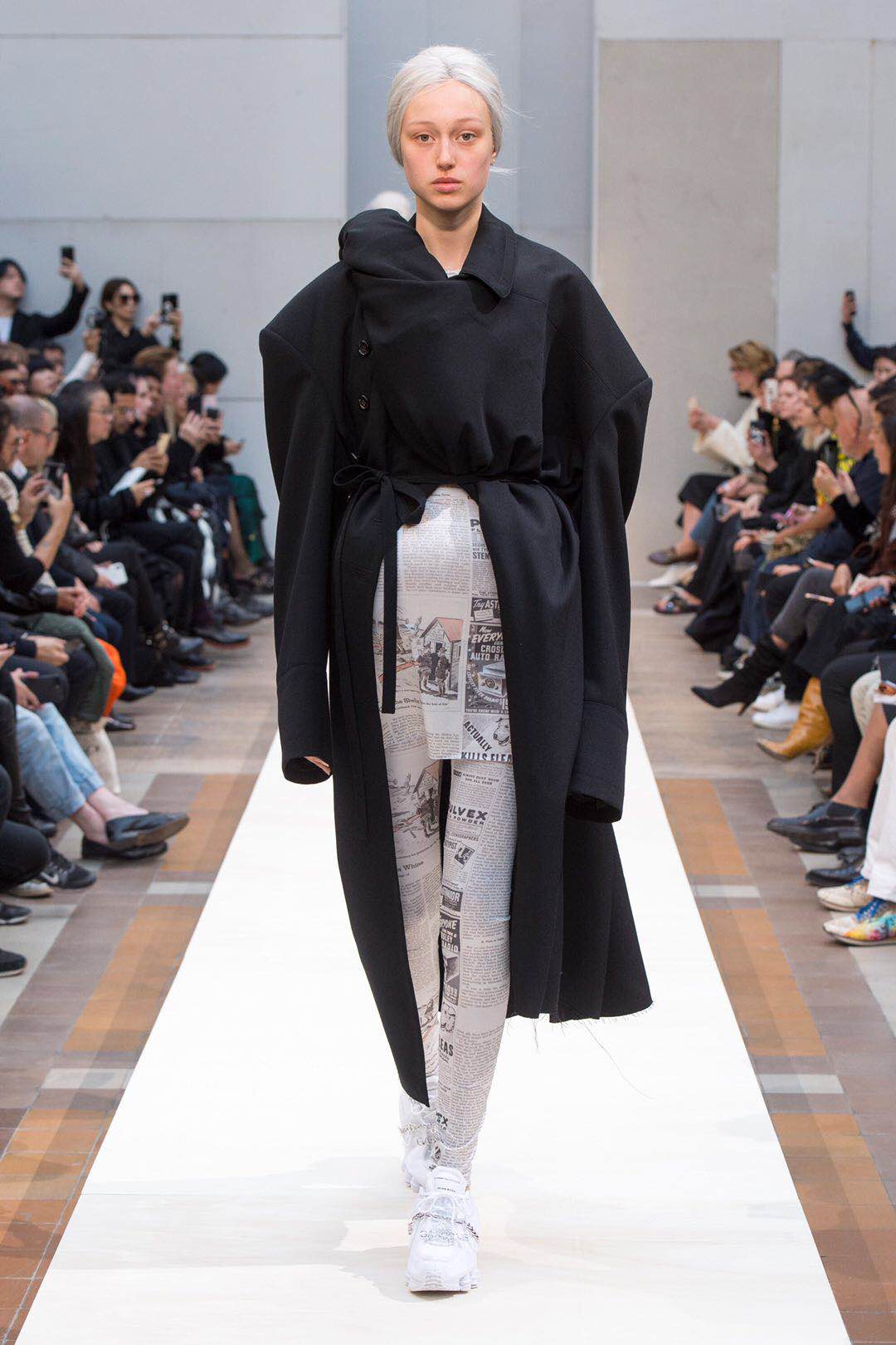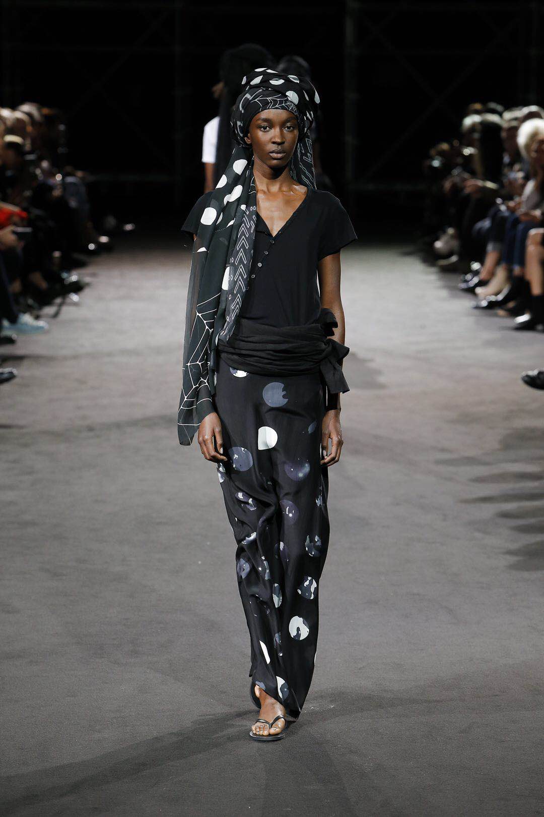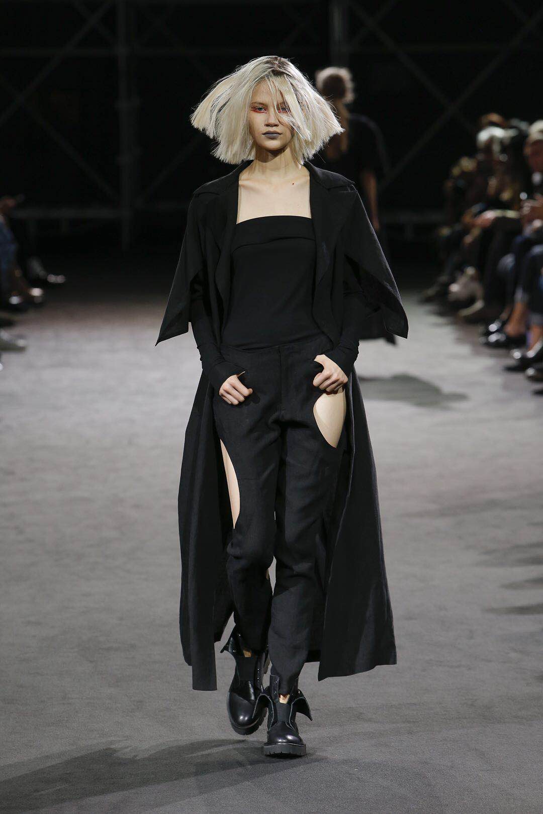 山本耀司在巴黎大皇宫的顶层画廊开辟了一块黑暗的场地,来描绘三种不同的主题。“反种族主义、反疯狂的全球变暖、反无性别时尚。”他在后台说道。近几季以来,山本耀司的想法是难预料的,有时流于表面,有时却过于深刻。不过他有自己的方向,那就是“回归男女着装的正常方式”。