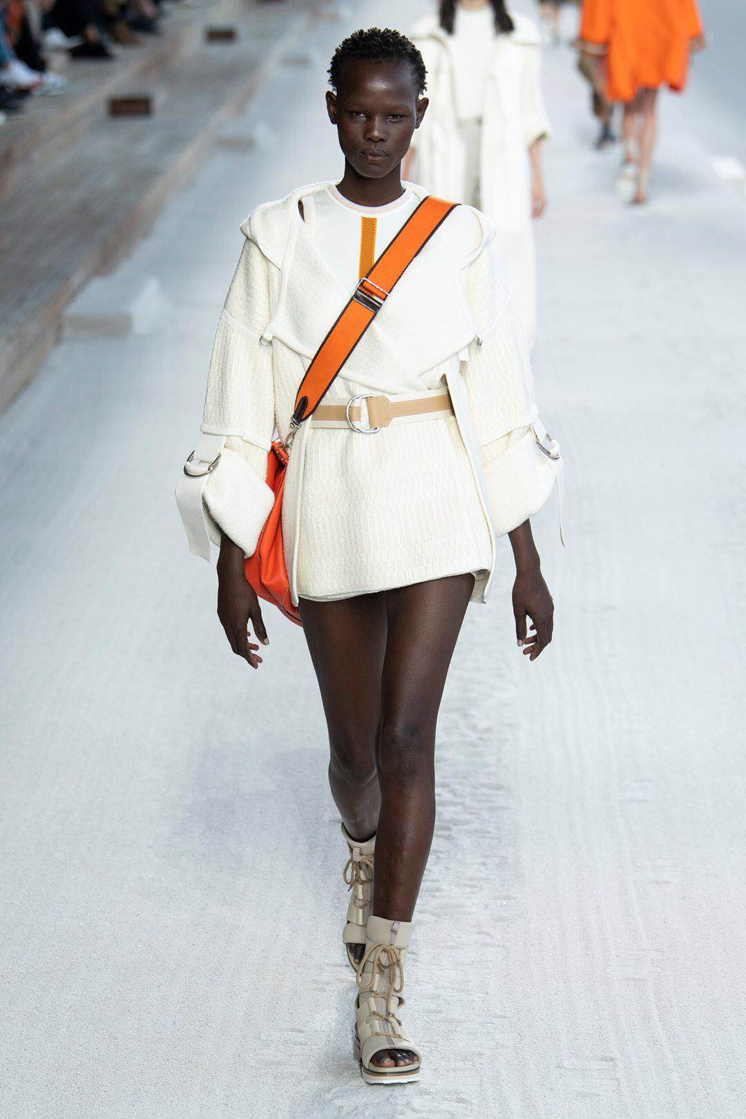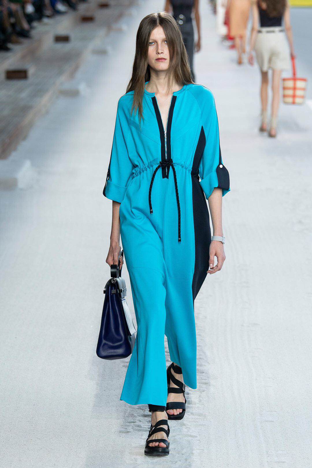 有个晴朗的好天气对于昂贵皮革来说是件再幸运不过的事,爱马仕2019春夏女装系列选择在法国隆尚赛马场发布。在这个挥洒汗水的运动场合中,女装艺术总监Nadège Vanhee-Cybulski带来了休闲风格的新系列。