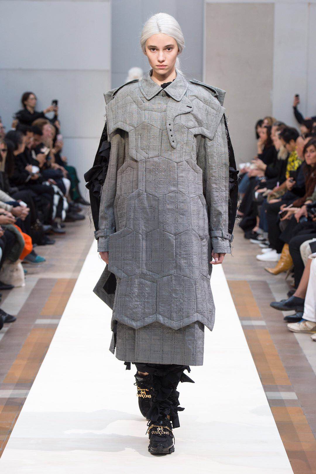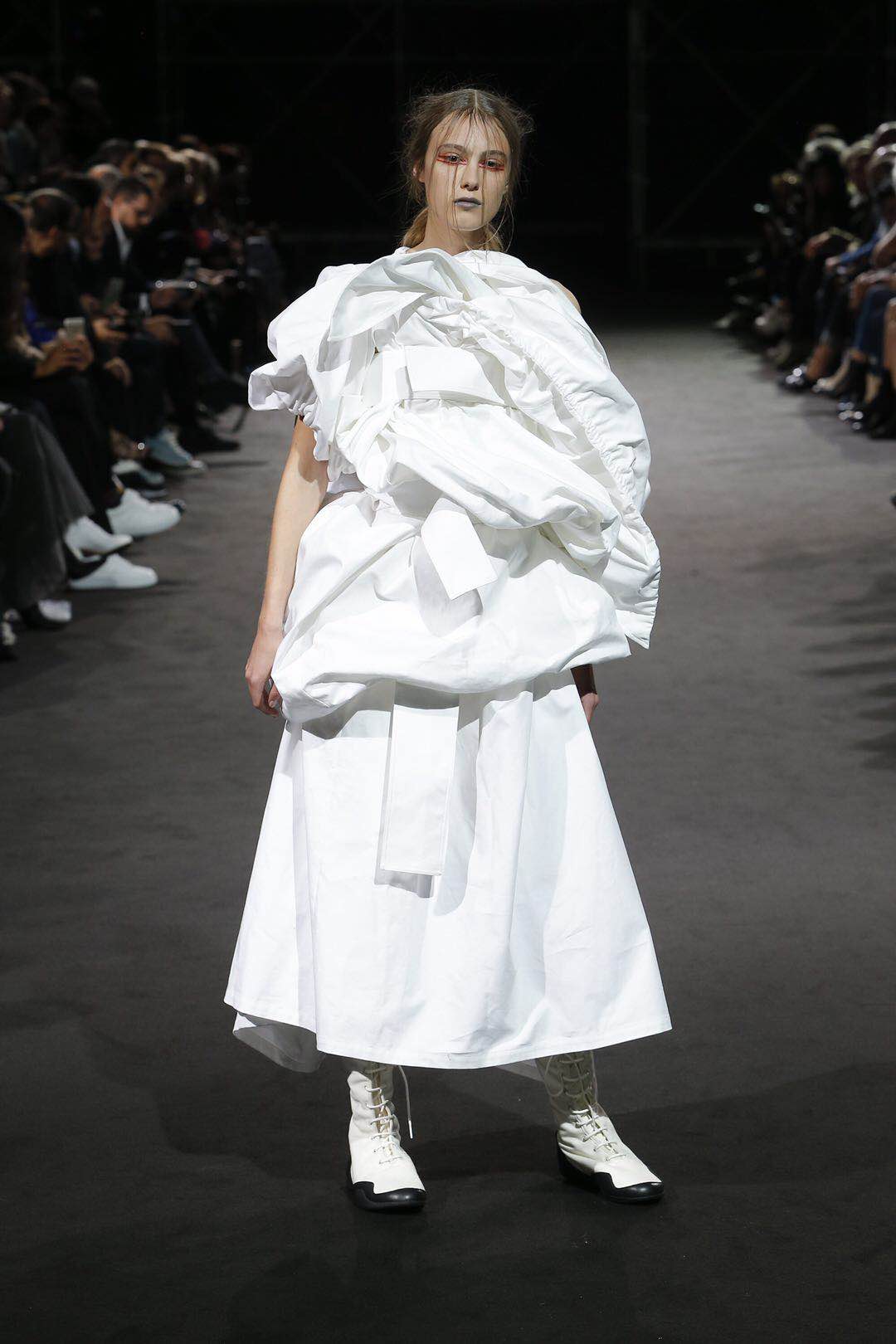 川久保玲想要做出改变了。这一季显然剥离了过去夸张、庞大和概念化的设计,绝大多数款式从廓形上便收敛了不少。此前,她的丈夫Adrian Joffe发布了一份声明预告了这样的改变,称川久保玲正在停止这十年来的抽象式表达。“我觉得这种方式不再新鲜了,”她说,“我要找一种更深刻、更内在的方式……关于内心深处的东西。”