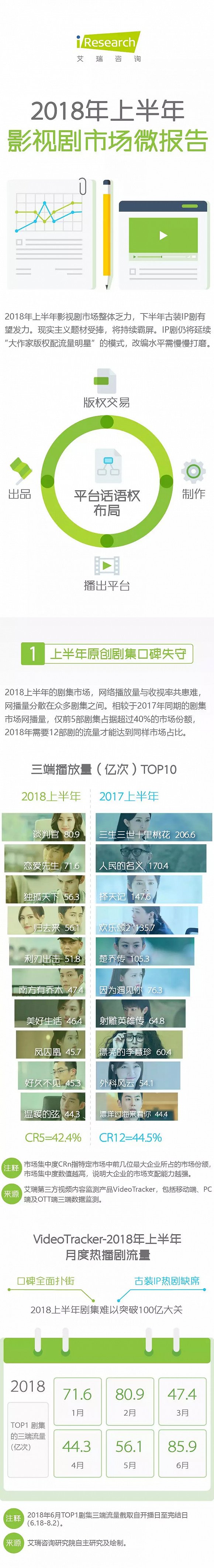 2018年上半年影视剧市场整体乏力,下半年古装IP剧有望发力。