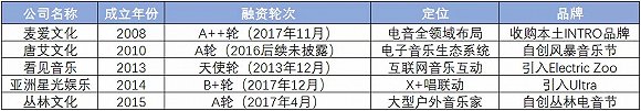 国内主要电子音乐厂商融资情况