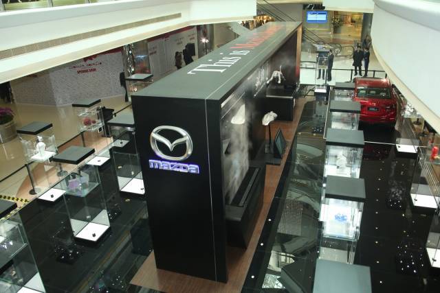 陈列展品是国内数位不同领域的时尚先锋围绕魂动这一主题进行的创作。以另一种角度展现汽车的设计美学和马自达的品牌精神,将冰冷的钢铁放在热闹的商场中,是一次别有创意的公关活动。