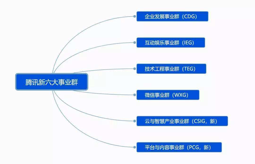 9月30日,腾讯正式启动战略升级,宣布下一个20年将从消费互联网转移到产业互联网。随之而来的是腾讯第三次组织架构「手术」,在原有七大事业群(BG)的基础上进行重组整合成立六大事业群:保留原有的企业发展事业群(CDG)、互动娱乐事业群(IEG)、技术工程事业群(TEG)、微信事业群(WXG);又突出聚焦融合效应,新成立云与智慧产业事业群(CSIG)、平台与内容事业群(PCG)。