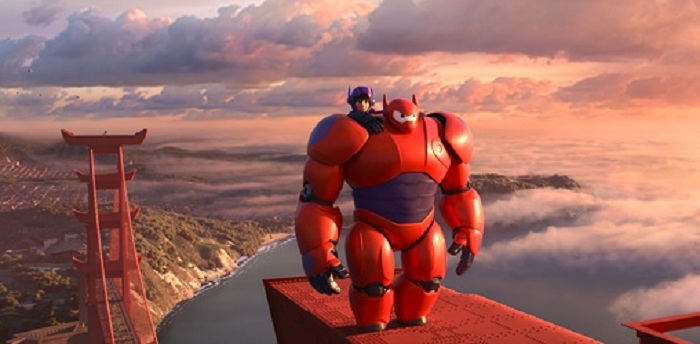 《超能陆战队》大白和小宏站在金门大桥上