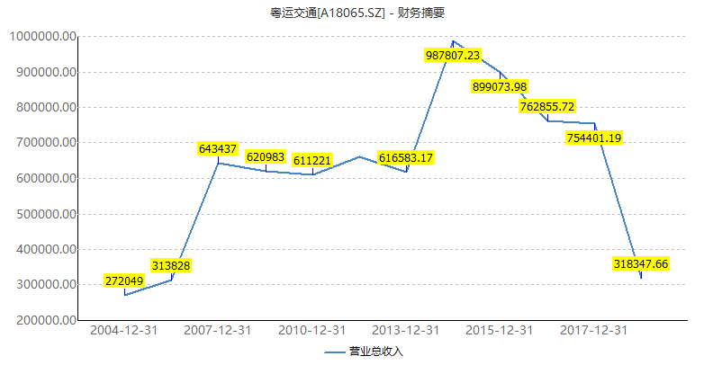 从营业收入来看,2014年成了粤运交通的顶峰,全年营业收入接近100亿元。然此后公司不仅未能突破100亿营收大关,收入还呈现阶梯状下滑。从近100亿元,到近90亿元,再到近80亿元,直至2018年上半年,营业收入降至31.83亿元,同比下滑6.11%。