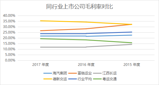 2018年一季度,粤运交通毛利率为16.10%,同期除江西长运(600561.SH)仅10%左右外,其余德新交运(603032.SH)、富临运业(002350.SZ)、海汽集团(603069.SH)等毛利率均高过粤运交通,在20%以上。