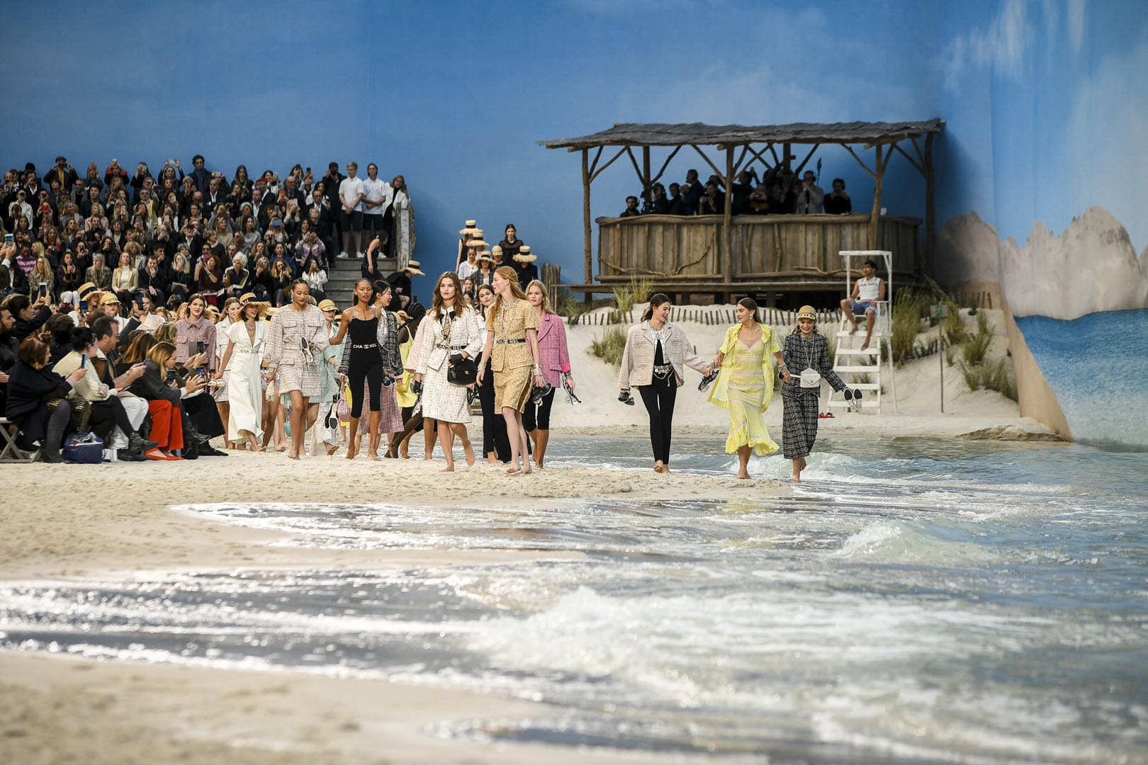 Chanel的秀场总能成为话题。火箭、仿制埃菲尔铁塔和山涧流水的峡谷都曾被搬入了秀场,那么造一个海浪沙滩也不会难倒它。