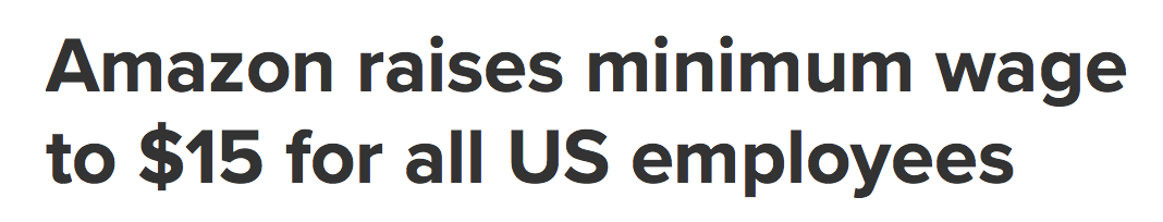 亚马逊称,新的最低工资将令25万多员工以及10万名季节性雇员受益,包括半职和临时工。一些时薪已经达到15美元的员工将获得加薪。亚马逊称,加薪的影响将反映在季度财报预期中。