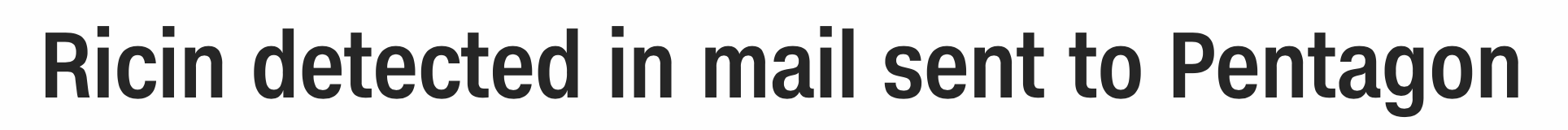【美国国防部收到含有蓖麻毒素的邮件】美国国防部一位官员称,周一两封投递到国防部传达室的邮件初步测试含有蓖麻毒素。