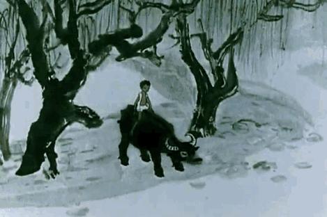 1961年,以齐白石绘画为蓝本,中国第一部水墨动画片《小蝌蚪找妈妈》终于与观众见面。在随后的1964年,美影厂又以李可染的水墨画《牧笛》为蓝本创作出了同名动画经典。