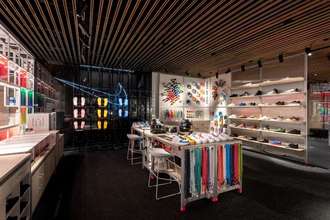 商店的玻璃制外墙被称为“创新之窗”,玻璃设计灵感来自耐克气垫技术,以及运动员的速度与运动形态。