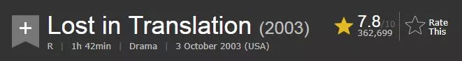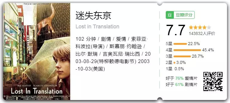 [迷失东京]:豆瓣7.7分,IMDb7.8分,烂番茄新鲜度95%