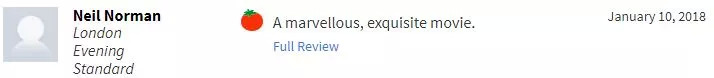 烂番茄最新的评论是今年年初时留下的:这是一部绝妙的、精美的电影。