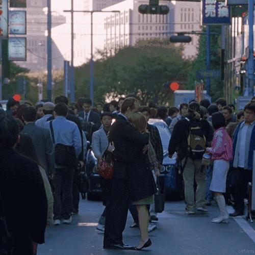 你很难把[迷失东京]归为爱情片,共处的时光呈现出断裂的状态,即使相识后,电影依然使用平行蒙太奇展现了两人的生活。