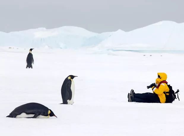 夸克的破冰船上一般都配备小型直升机和登陆小艇,提供海、陆、空全方位的探索体验。也正是这家有着黄色冲锋衣标志的公司,在2004年发现了目前最靠北的帝企鹅聚居地。
