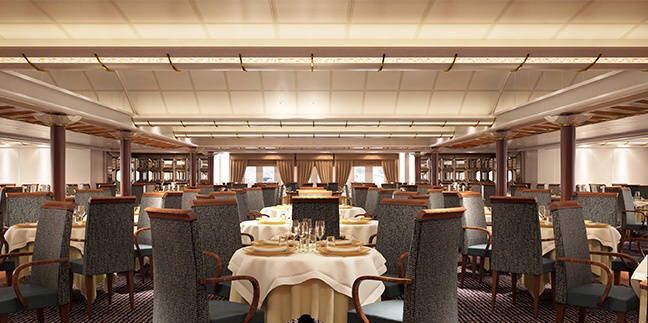 船上空间宽敞舒适,拥有6个独立餐厅,专门的 SPA 中心和探险研究区。在这艘船上,解锁米其林美食和管家服务,都不是问题。