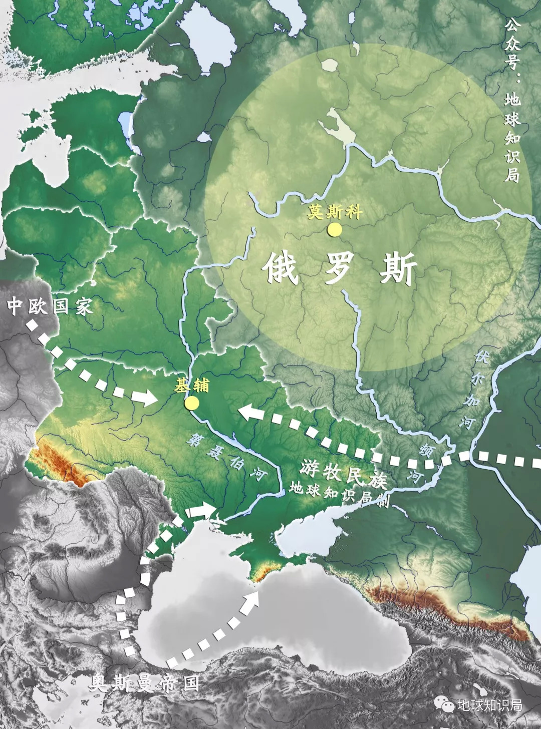 而且俄族人在崛起的早期,主要经略方向也不是第聂伯河上游这片被密林所覆盖的山地。从莫斯科出发,向北控制瑞典人留下的诺夫哥罗德,并探寻通往大西洋的出海口,是更加省力的操作;而在南方,顿河和伏尔加河流域也有着更大的吸引力,第聂伯河流域还稍显遥远。