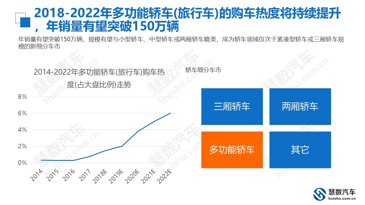 2018-2022年多功能轿车(旅行车)的购车热度将持续提升,年销量有望突破150万辆
