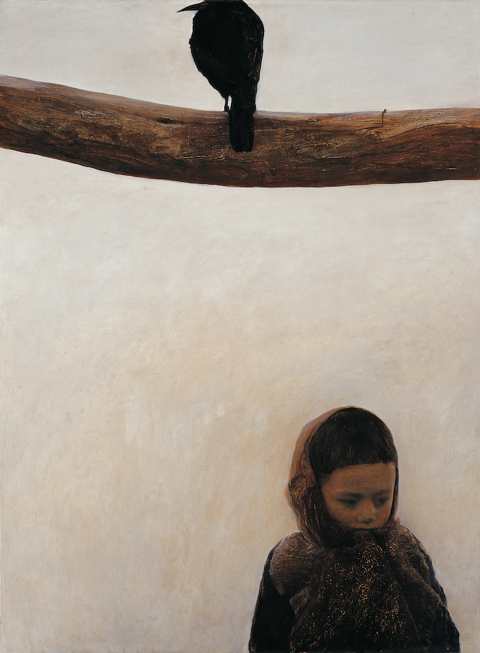 何多苓在艺术界崭露头角的作品,是1982年创作的油画《春风已经苏醒》,画面上一个十来岁的彝族女孩坐在草地上,下意识地把右手食指放在嘴里,眼神干净得没有一丝杂质。这幅画是何多苓在四川美院的毕业创作,曾经投稿参加四川省美展,但落选了,因为“领导觉得情调太灰暗”,后来被栗宪庭推荐到《美术》杂志,才出了名。