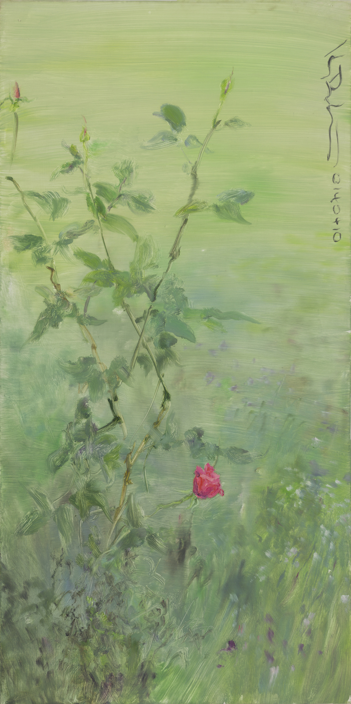 何多苓创作的对象也从凉山的高山、俄罗斯的森林,变成了自家花园里的花花草草。在他看来,这与他个人生活状态、观察刻度的变化分不开,当然,还有年龄。很难想象何多苓已经70岁了,他说自己并没有太多地感受到年龄的限制,但年龄的确带来了紧迫感,“什么事都要抓紧了,抓紧玩,抓紧画画。”对他来说,对于人生的态度也改变了,很多事情没那么往心里去了,不计较、不纠结,也不愤怒了。何多苓把这种心态上的变化解释为上了年纪的人的一种“自我保护机制”,“身体状态取决于心理状态,每天郁郁寡欢,身体也好不了,所以就要什么事都看淡一点,其实是一种被动的逃避,但也是一种自我保护。”