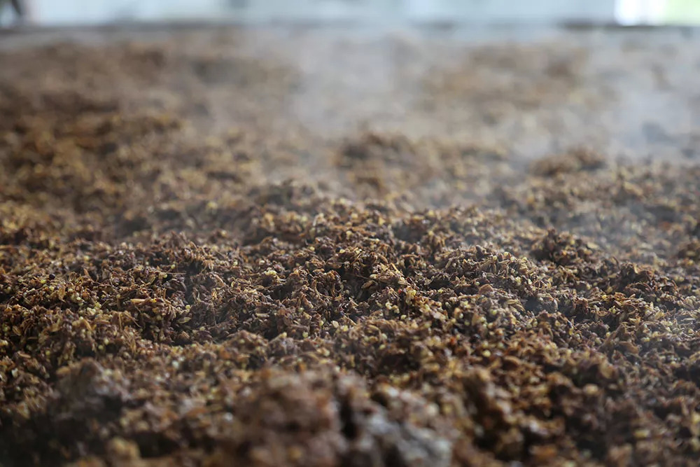 如果你走进白酒酿造车间,想必看到最多的便是酒糟了。从原粮到出酒的整个过程,数万吨粮食将经历包括发酵、蒸馏等多道工序。待美酒汩汩而出时,酒糟也完成了它的使命,变为丢糟。