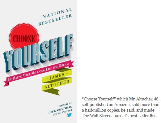 “Choose Yourself”《选择你自己》Altucher自己出版的这本书在Amazon卖出了50万本,荣登华尔街日报畅销书榜单。