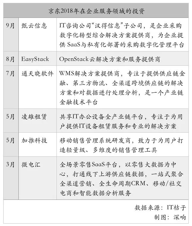 京东在企业服务领域一共有超过20笔投资,包括甄云信息、EasyStack、通天晓软件、凌雄租赁、加推科技等等,最近京东云还发布了“医疗健康战略”,想要做医疗行业的基础设施,推动医疗信息化。