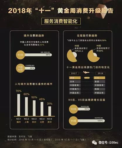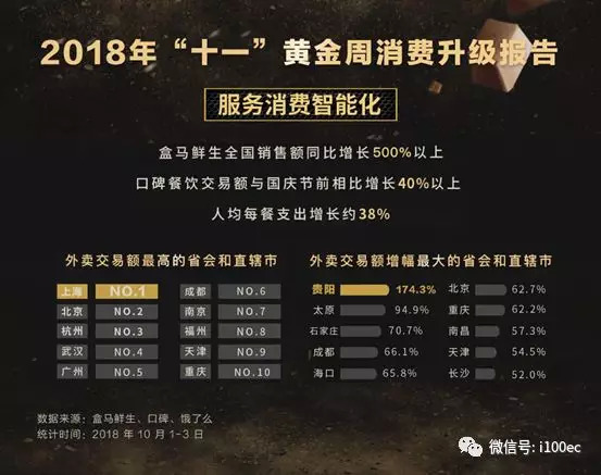 今日,国庆小长假消费数据出炉,新零售、服务消费等消正成为中国消费新趋向,阿里、京东、苏宁、携程、同程艺龙、马蜂窝、美团等平台成为推动消费升级的重要力量。对此,电子商务研究中心(微信ID:i100ec)结合各方数据总结了今年国庆的五大消费特点。