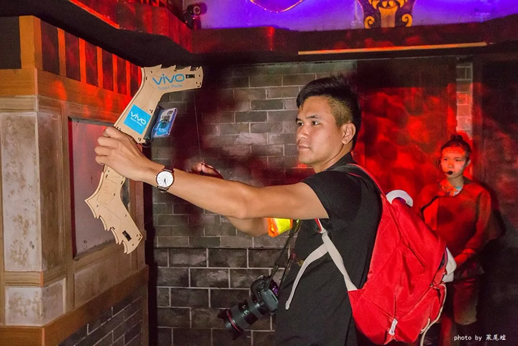 和一群朋友一起玩,很是过瘾,一场高科技和哈喽喂的结合,很像是游戏里的场景,开弓射击妖怪,最后美丽的公主被我们救出来,成功升级。