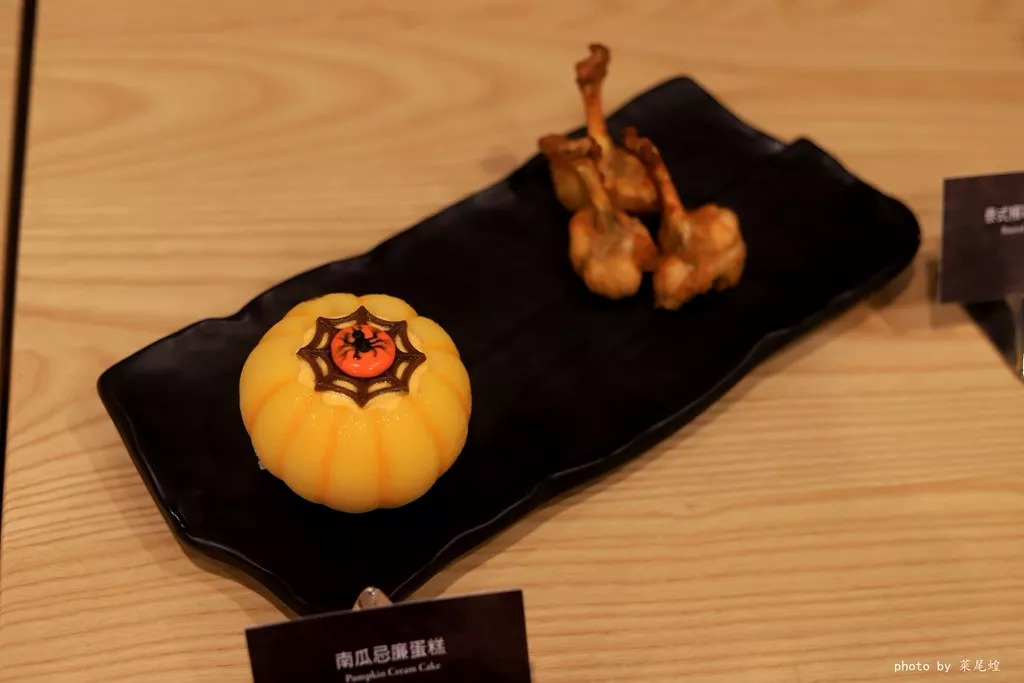 爱搞怪的酷企鹅准备和游客一起于鬼怪森林探险!香脆酷企鹅造型饼干及浓郁蟹饼可口非常,大厨更特别选用环保海鲜阿拉斯加皇帝蟹肉调制,鲜甜滋味配上蓝莓沙拉汁及香滑芝士一起品尝,让游客无惧黑暗。