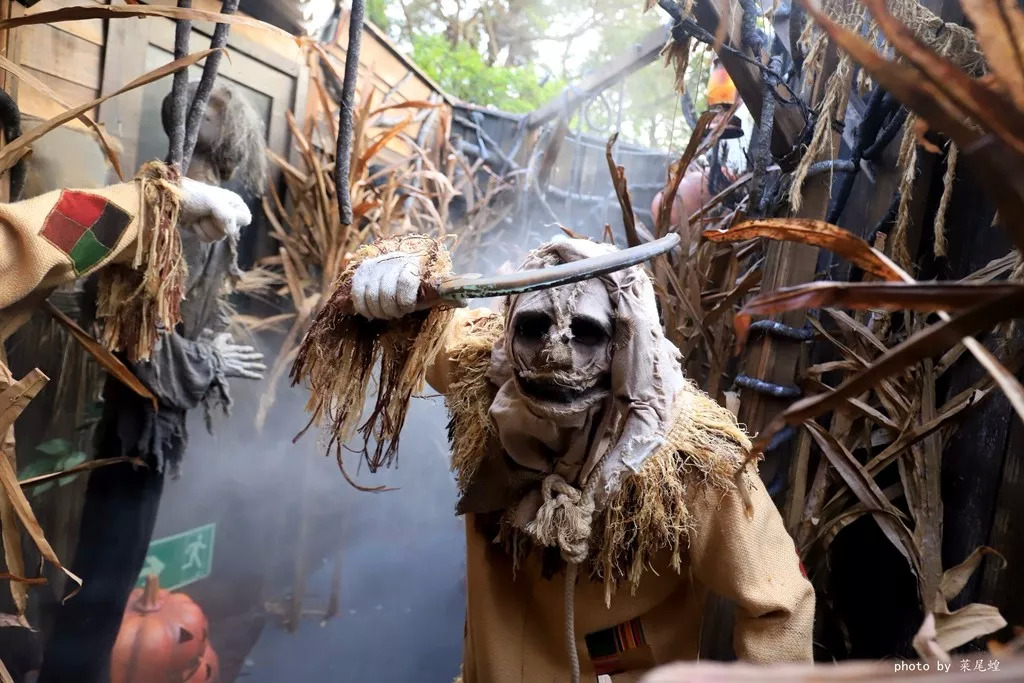 这一站是森魔屠园,南瓜和稻草人变成了妖魔鬼怪,进去后发现这个村庄发生了灵异的现象,村民全民杀死了,我们是白天进入,如果晚上,会更加恐怖,无头鬼,南瓜,像是麻风病人手持弯刀要砍过来,防不胜防。估计很多女孩子要被吓哭。