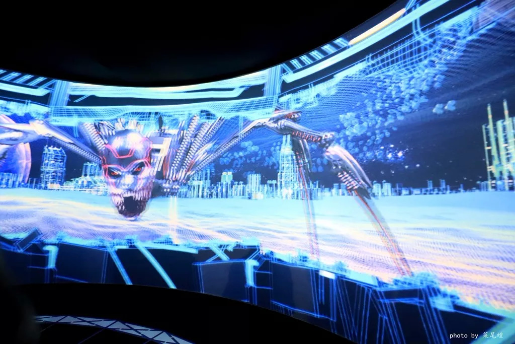 “X异域”的景点分两大部份:在投影地带,游客需戴上立体眼镜,场景装置会通过精准的Leap Motion技术追踪游客的动作,让投影与游客全方位互动,游客将深切感受被邪恶人工智能所困的刺激感;脱下立体眼镜后,游客会进入光影交错迷宫地带,仿如被困于虚拟数码空间,遭到高智能机械人追捕,延续与邪恶 AI 的恶斗。这次的哈喽喂不断升级,游客的实际体验会更加强烈。