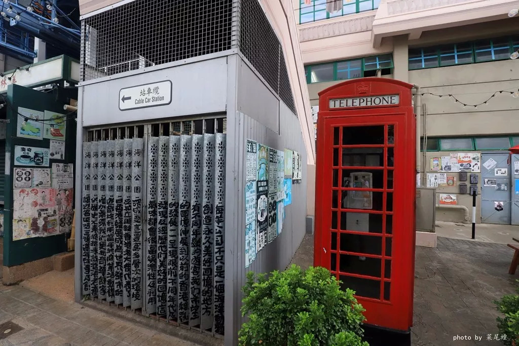 在上缆车之前,经过一条复古街,将香港以前的回忆一点点重演,丁丁车,香港老大街,广州蛇王豪药行,福荣藤器,香港的红色电话亭,奇华饼家,