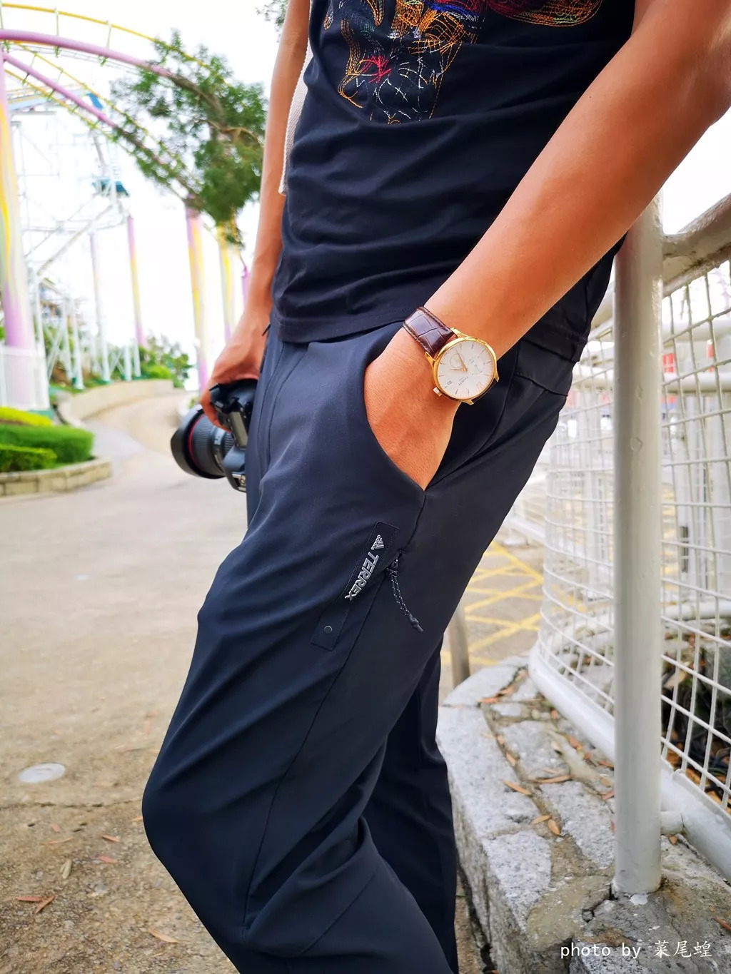这次菜大叔背的是国家地理NG的牛津布双肩红色背包+Adidas terrex户外裤和力高牛仔短裤+力高男装黑T+小白鞋,简约的休闲风,行走自如,一颗年轻的心,潮走四方。