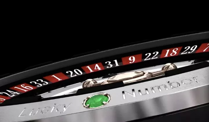 透明蓝宝石底盖下还有个设计精巧的轮盘。轻晃手腕,又能体验另一项经典的赌场游戏。